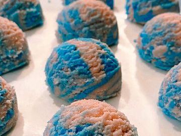 A fun scoop of solid bubble bath with castor oil to moisturize.