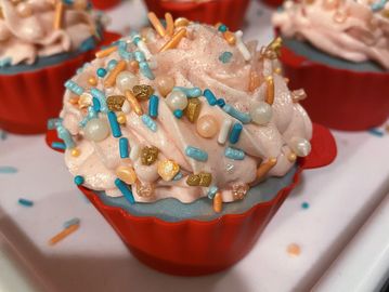 A 4.5oz bar soap in the shape of a cupcake. These fun, playful soaps pair well with bubble scoops for a delightful gift set.