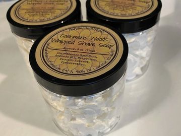 A 6oz jar of whipped textured soap with avocado oil for shaving.
